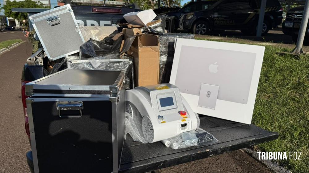 Ação conjunta PF e PM apreende eletrônicos e arma de fogo em Foz do Iguaçu