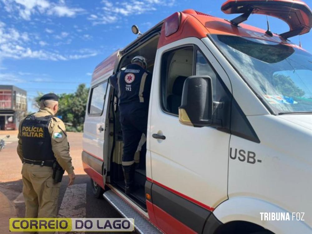 O Serviço de Atendimento Móvel de Urgência (SAMU) foi acionado e prestou os primeiros socorros ao motociclista, que apresentava dores no braço esquerdo e relatou ter batido a cabeça na queda. Ele foi encaminhado ao Hospital Beneficente Moacir Micheletto para avaliação médica.