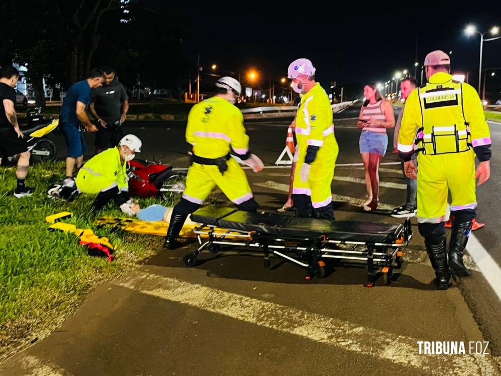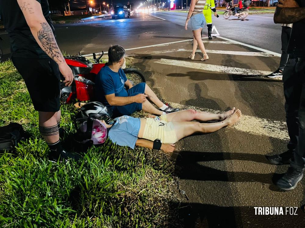 Duas pessoas estavam na motocicleta, sendo um homem e uma mulher encontrava-se feridos.