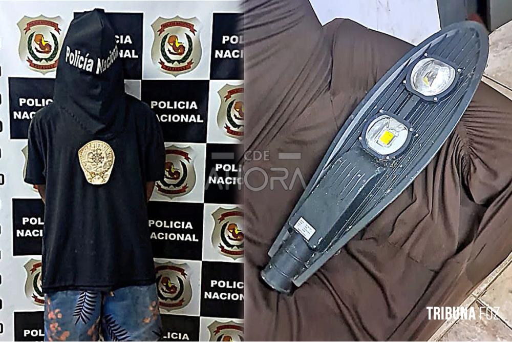 Um menino de 14 anos foi preso na madrugada de ontem, sexta-feira 28 de novembro de 2025, no bairro Juan E. O’Leary após furtar uma luminária de led um poste de iluminação pública em Ciudad Del Este, no Paraguai.