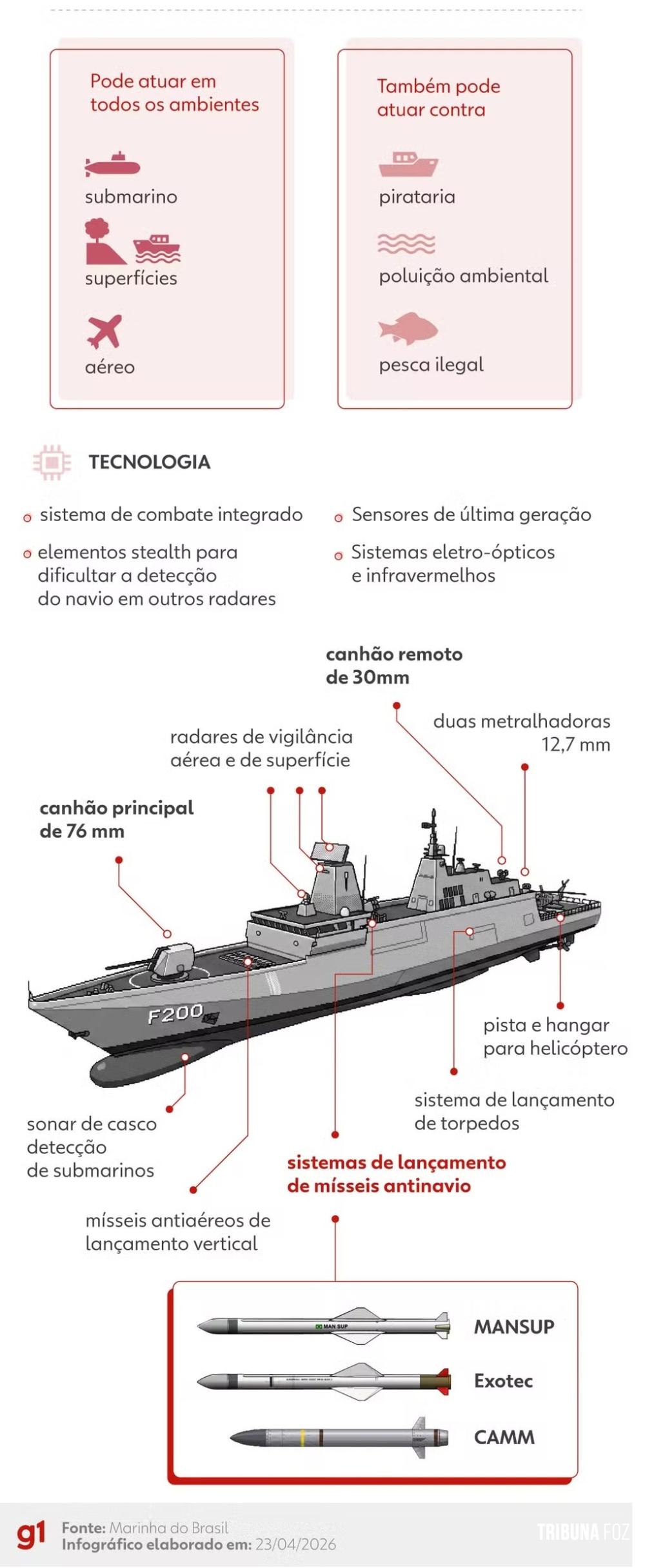 A Fragata Tamandaré (F200), incorporada na última sexta-feira (24/04/2026) pela Marinha do Brasil, foi a primeira de oito novas embarcações para reforçar a segurança na Amazônia. Ela integra o primeiro lote, com quatro navios de guerra, de um programa voltado à modernização da esquadra da Força.