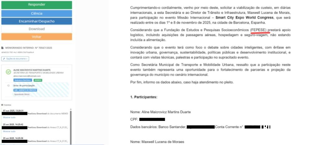 Segundo memorando interno nº 7567/2025, encaminhado ao gabinete do prefeito, a secretária Aline Maicrovicz solicitou verba de alimentação para uma viagem internacional ao badalado Smart City Expo World Congress. Até aí, nada de novo: eventos sobre “cidades inteligentes” costumam ser o álibi perfeito para deslocamentos caros e resultados invisíveis. O detalhe incômodo está no patrocinador da aventura: a Fepese, fundação contratada pela própria secretaria para realizar o estudo prévio do transporte coletivo do município.