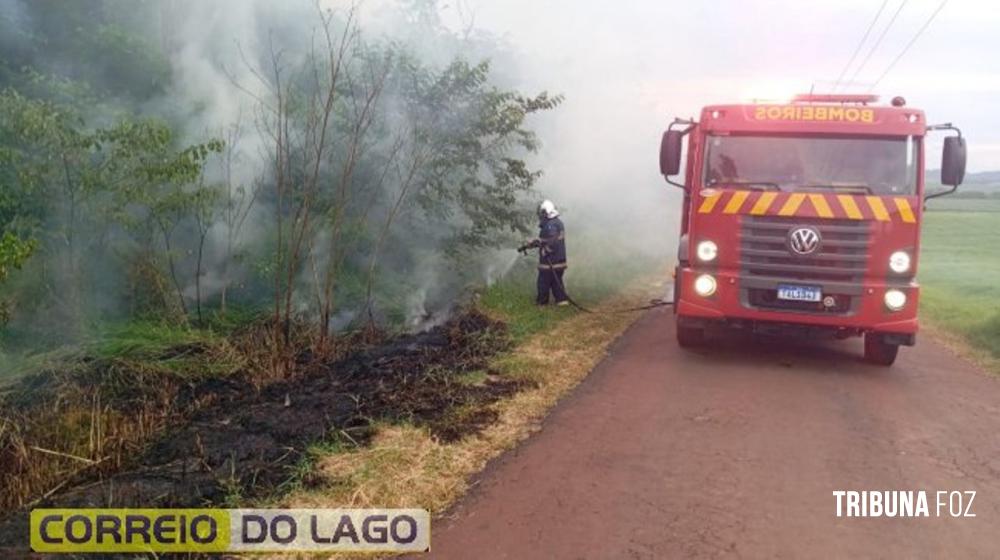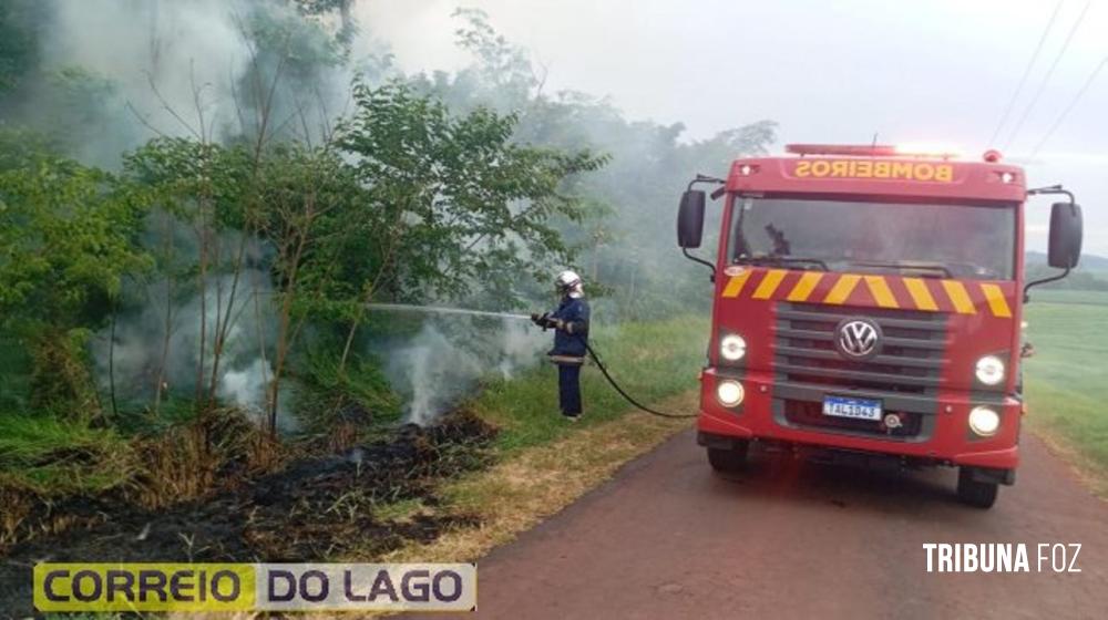 Bombeiros controlam incêndio em vegetação na Linha União, área rural de Santa Helena