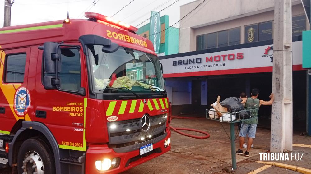 Uma outra equipe de combate a incêndio foram pela parta da frente da loja denominada Bruno Motos. Após 30 minutos de combate as chamas, o fogo foi controlado.