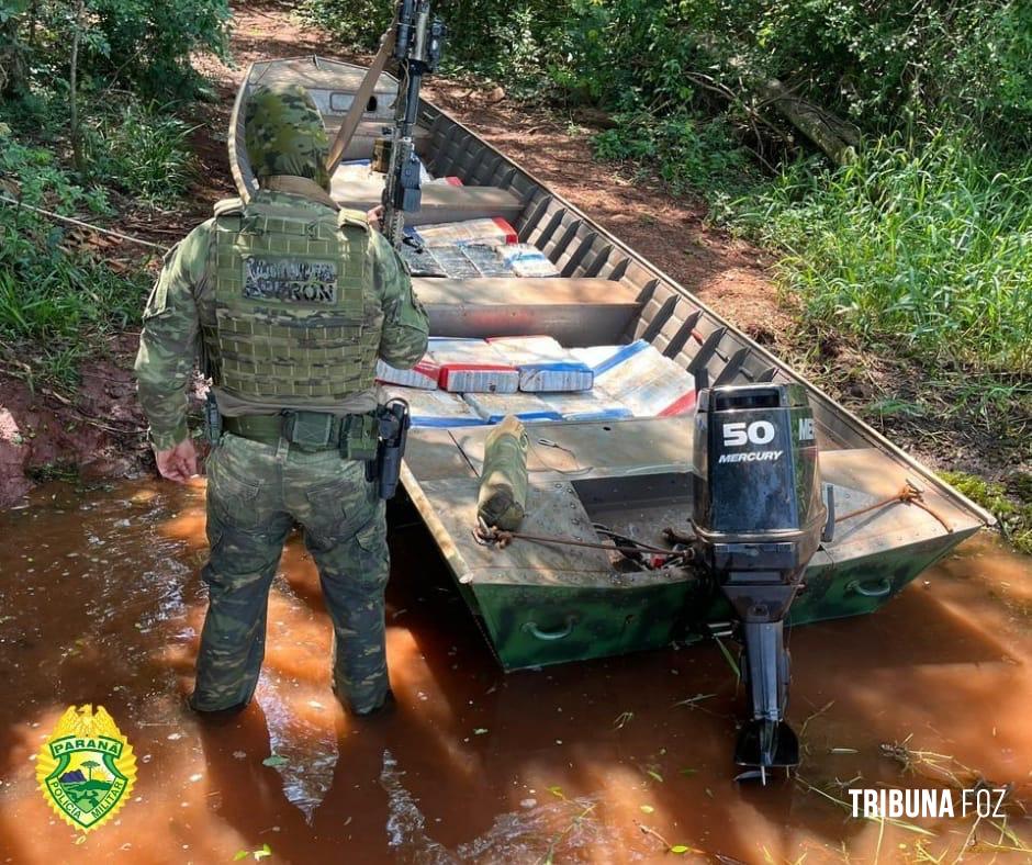 No dia de ontem, quarta-feira 15 de outubro de 2025, a Polícia Militar do Paraná por meio do BPFRON (Batalhão de Polícia de Fronteira), no âmbito da Operação Protetor de Divisas e Fronteiras, quando realizava patrulhamento embarcado na região do Lago de Itaipu, quando visualizou uma embarcação camuflada atravessando do Paraguai para o Brasil.