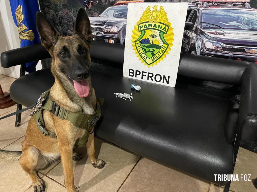 No dia de ontem, segunda-feira 05 de janeiro de 2026, a Polícia Militar do Paraná por meio do BPFRON (Batalhão de Polícia de Fronteira), por intermédio do Pelotão de Operações com Cães, em ação conjunta com agentes do NEPOM (Núcleo Especial de Polícia Marítima) da Delegacia da Polícia Federal de Foz do Iguaçu, quando realizavam operação, quando visualizou dois indivíduos em frente a uma residência, local que, segundo informações, estaria sendo utilizado para a prática de tráfico de drogas.