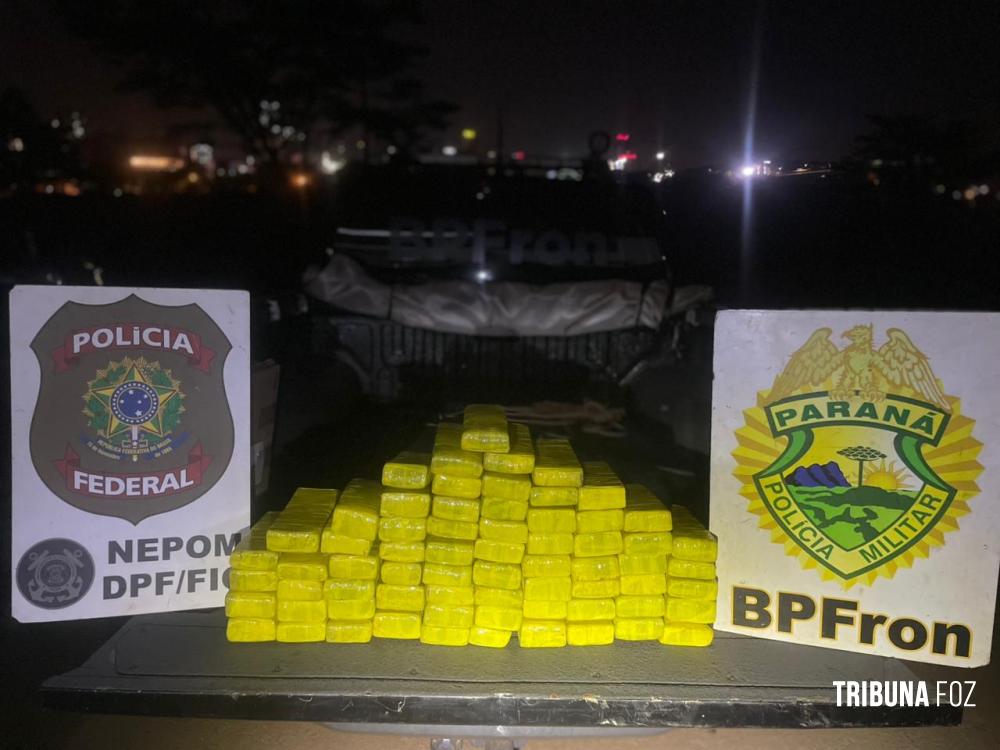 No dia de ontem, domingo 08 de fevereiro de 2026, a Polícia Militar do Paraná, por meio do Batalhão de Polícia de Fronteira (BPFRON), no âmbito da Operação Protetor de Fronteiras e Divisas, realizou uma apreensão de entorpecentes em ação conjunta com a Polícia Federal, por intermédio do Núcleo Especial de Polícia Marítima (NEPOM) em Foz do Iguaçu. Durante patrulhamento e monitoramento pelo rio Paraná, as equipes visualizaram uma embarcação saindo da margem paraguaia e atracando em território brasileiro. Em seguida, foi observado um indivíduo subindo uma trilha, carregando um volume suspeito. Ao se aproximarem de uma área de residências na região conhecida como favela do Monsenhor Guilherme, as equipes tentaram realizar a abordagem.