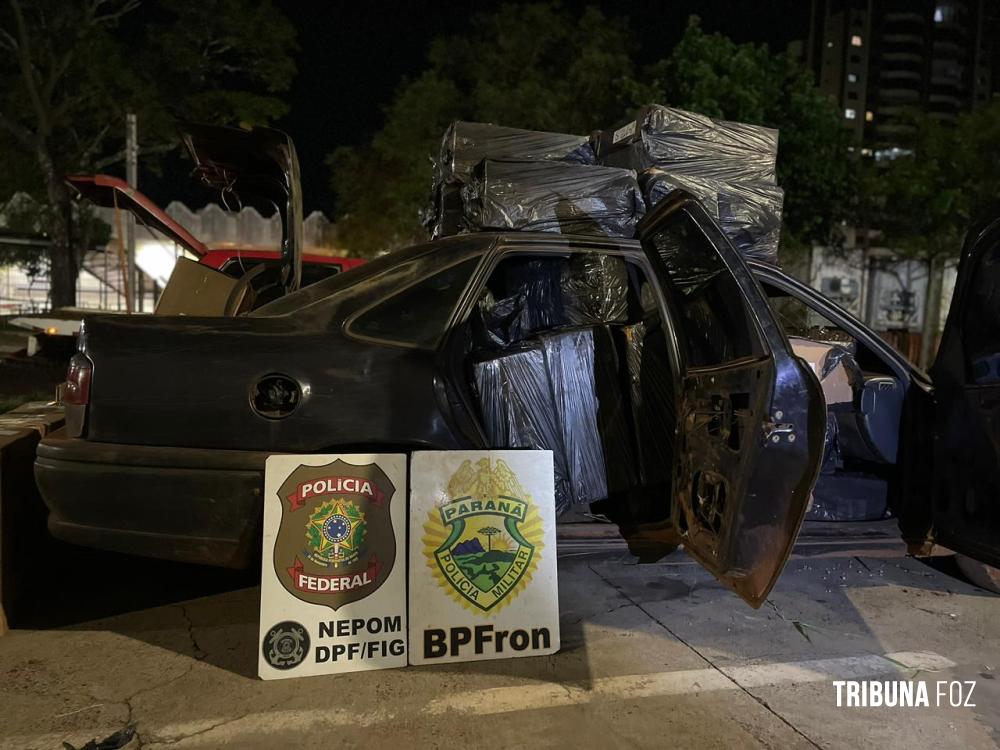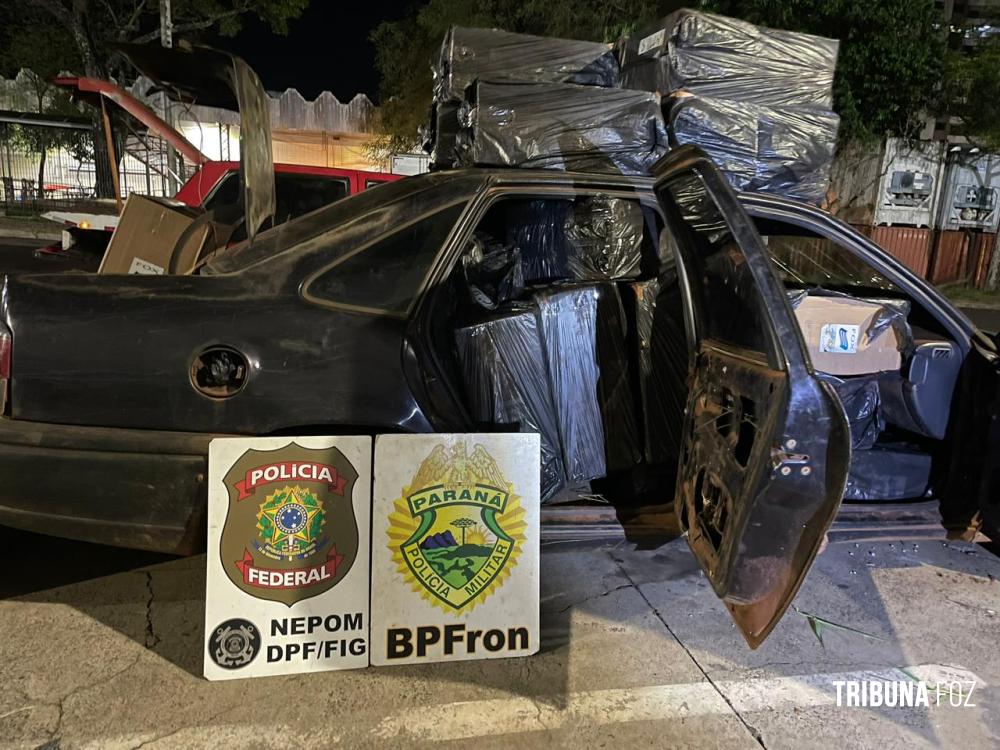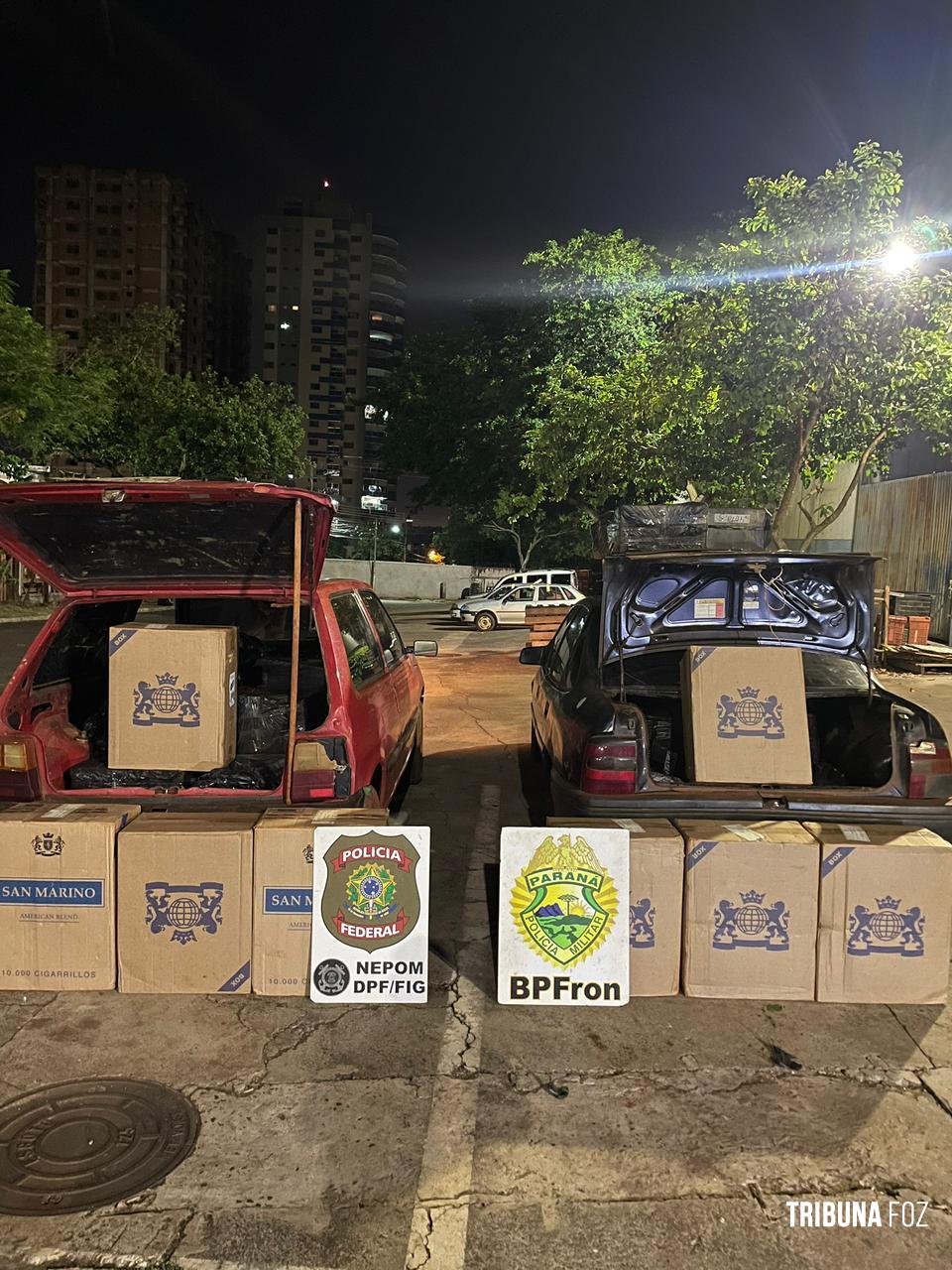 BPFRON e PF apreendem dois veículos carregados com cigarros contrabandeados do Paraguai em Itaipulândia