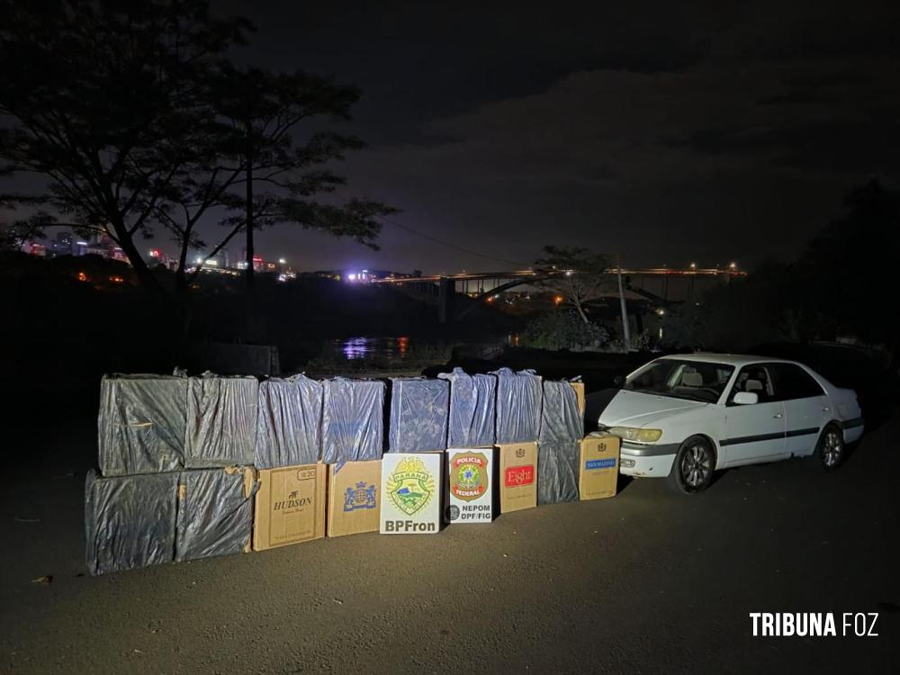 BPFRON e PF apreendem veículo carregado de cigarros contrabandeados do Paraguai em Foz do Iguaçu