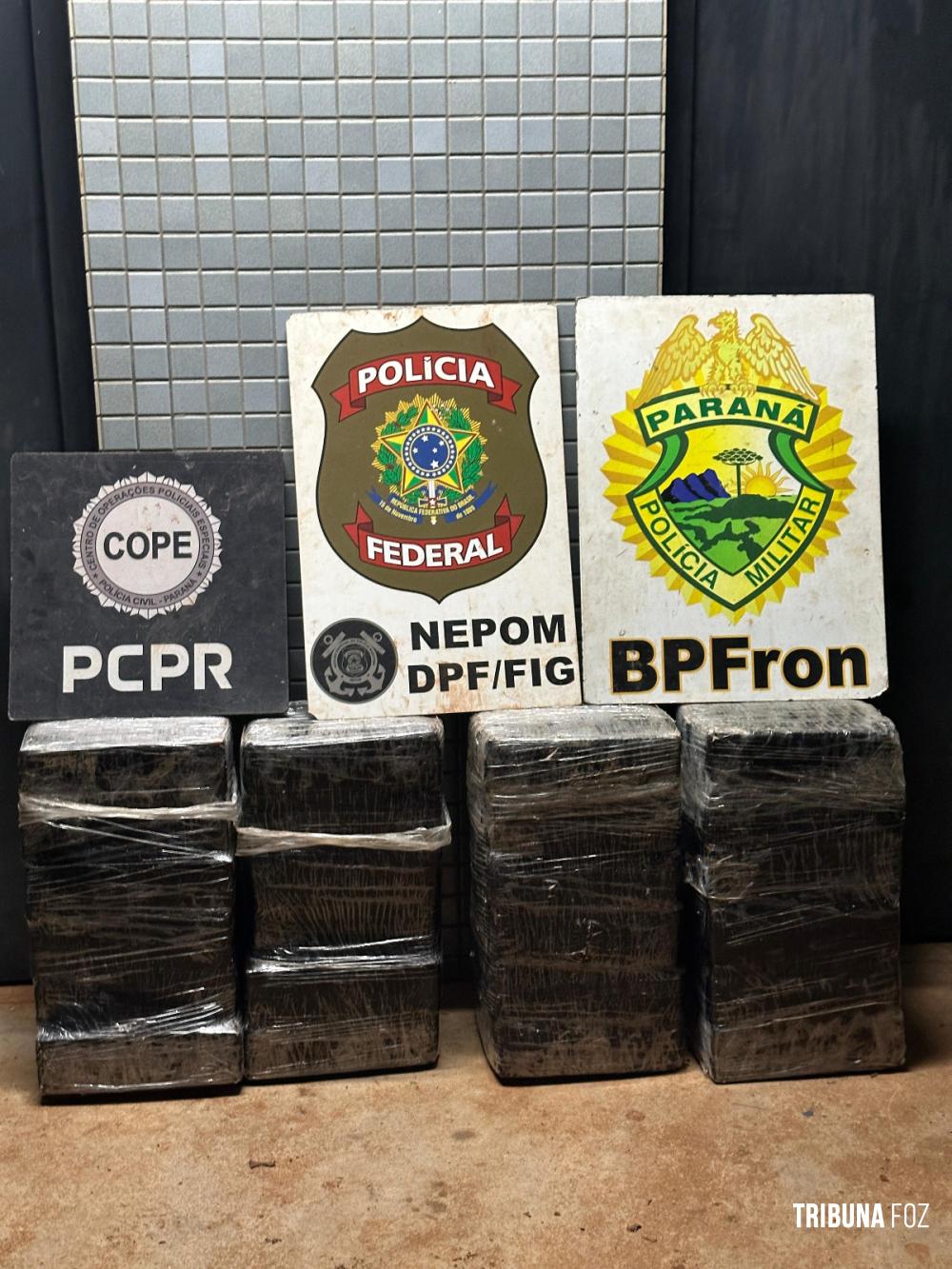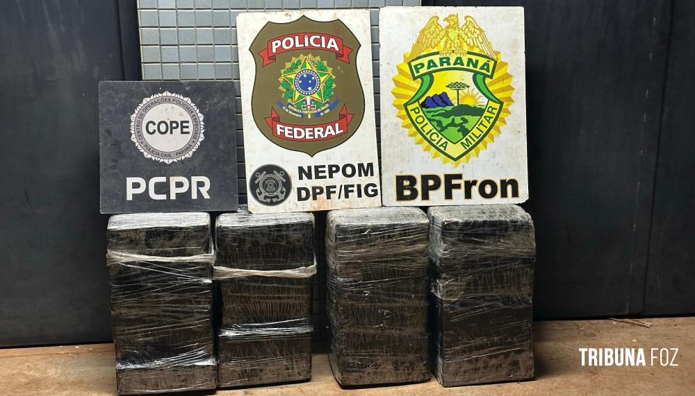 BPFRON, PF e PC apreendem mais de 100,9 Kg de maconha divididos em quatro fardos em Foz do Iguaçu