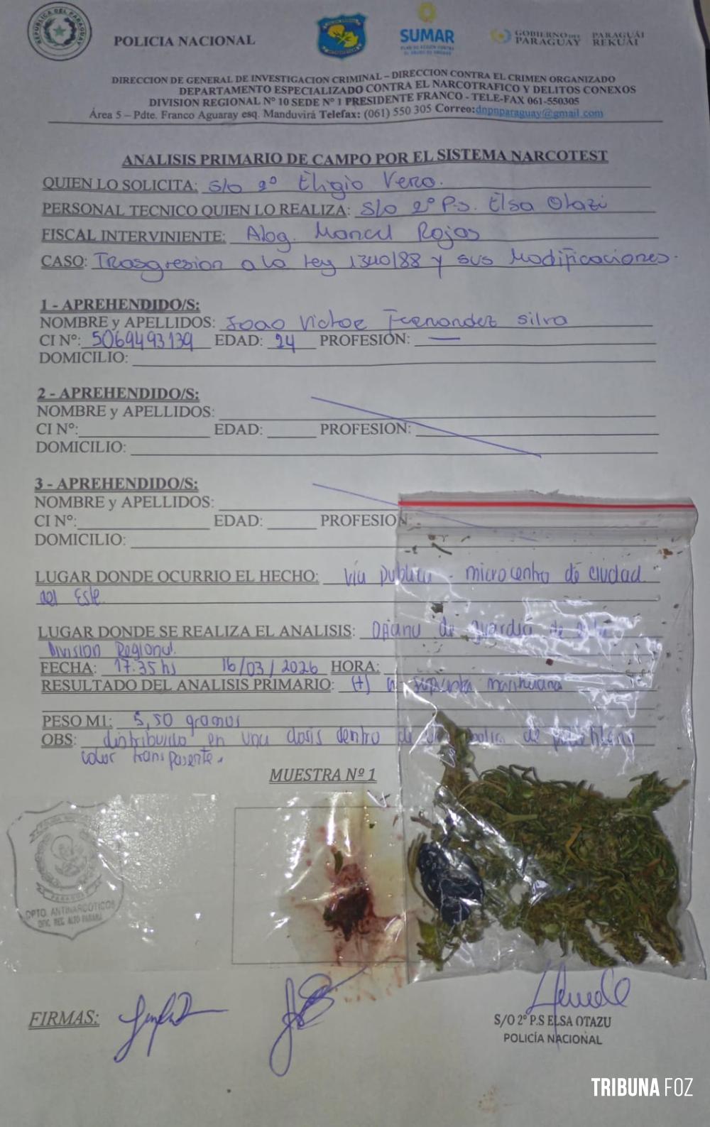 Na tarde de ontem, segunda-feira 16 de março de 2026, por volta das 14h:40min, policiais da Policia Nacional do Paraguai, equipe em serviço na 1ª Comissária da Policia Nacional, quando procederam a abordagem policial a um individuo em atitudes suspeitas na Av. Luis Maria Arguanha, nas proximidades do Posto de Serviço 8 de Agosto, área central de Ciudad Del Este.