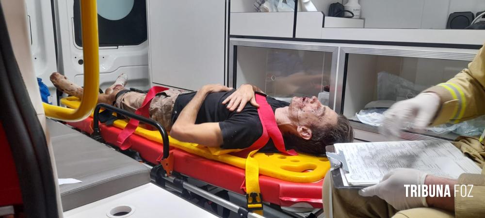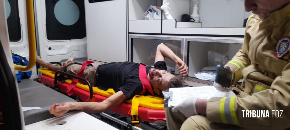 Socorristas do Siate constataram uma fratura na perna e na face, sendo encaminhado para o Pronto Socorro do Hospital Municipal.