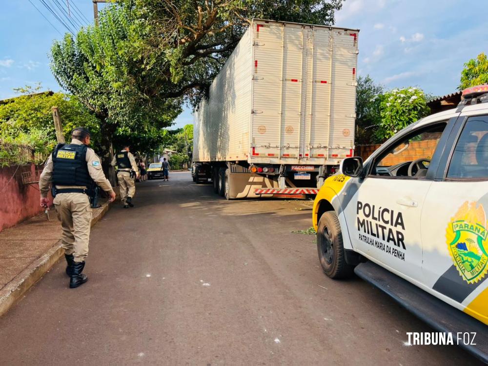 Carreta furtada é recuperada após rastro de destruição na Vila Miranda em Foz do Iguaçu