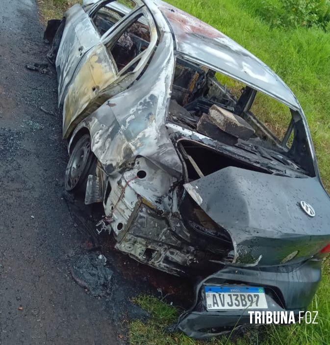 Na tarde de ontem, sexta-feira 09 de janeiro de 2026, por volta das 16h:35min, poucos minutos após acontecer um crime de homicídio no Jardim Canadá em Foz do Iguaçu, onde os homicidas utilizaram um veículo VW / Voyage, de cor prata, ainda nas proximidades do crime, mais precisamente na Rua Engenho Novo, quase cruzamento com a Avenida Araucária, o veículo foi abandonado e incendiado.