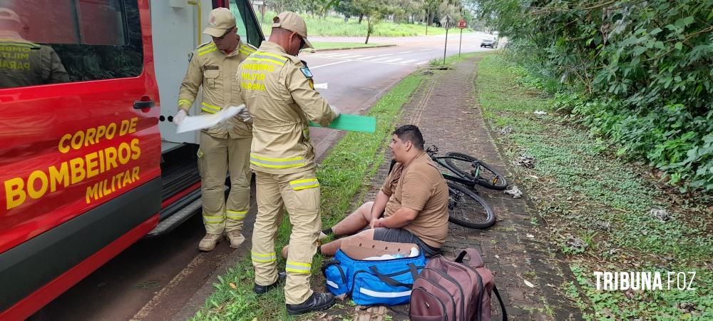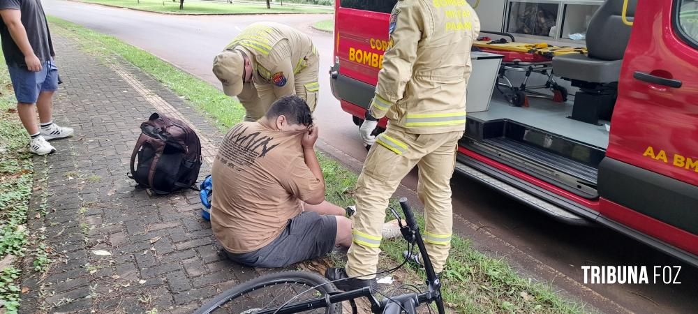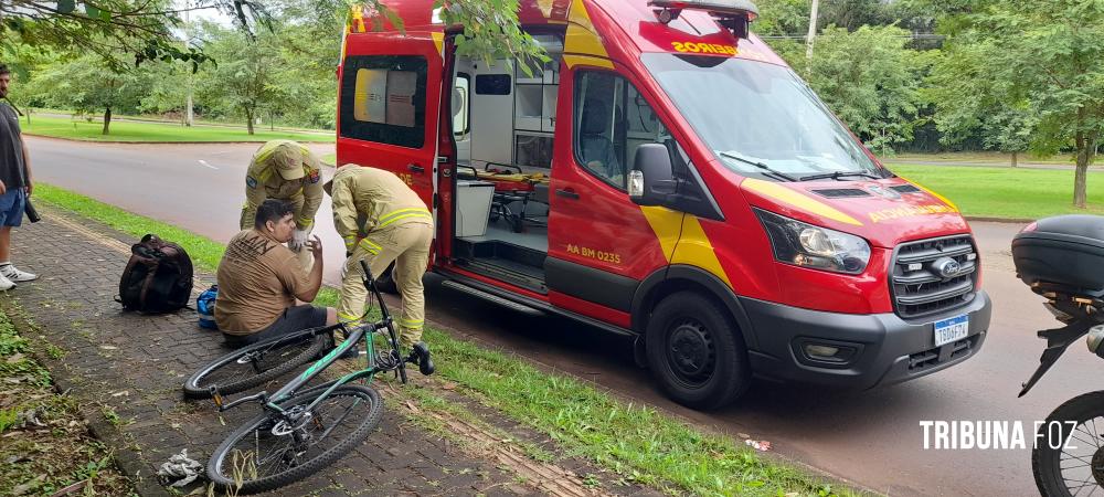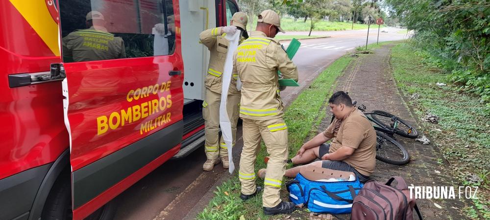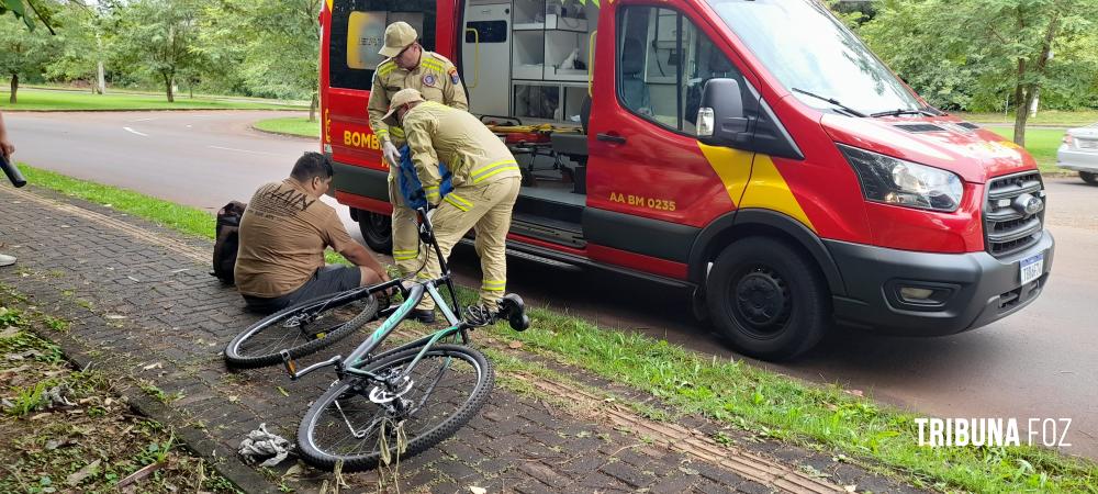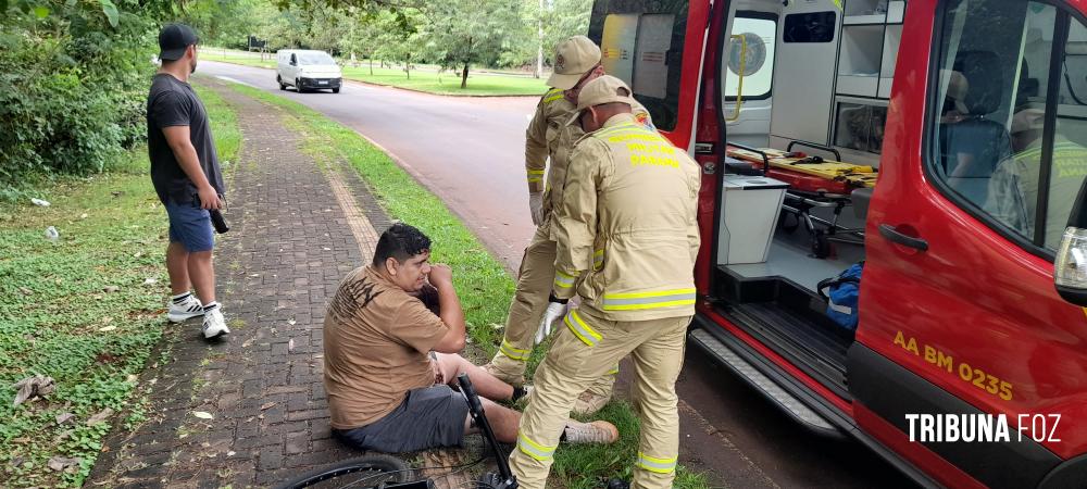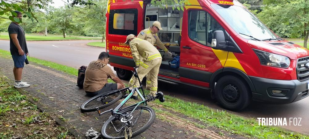 No inicio da tarde de ontem, terça-feira 21 de abril de 2026, por volta das 12h:10min, socorristas do Siate de Foz do Iguaçu foram acionados para deslocarem até a rotatória da Avenida Safira, nas proximidades do Shopping Catuaí e Horto Municipal, na região do Bairro Porto Meira, para darem atendimento a uma vítima de queda de bicicleta.