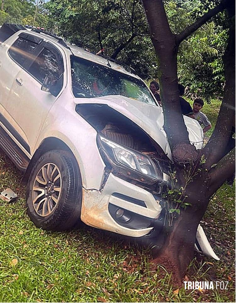 Segundo testemunhas, o veículo trafegava em alta velocidade quando, ao tentar frear para ultrapassar uma fila de carros no semáforo próximo ao Paraná Country Club, o motorista perdeu o controle devido à pista molhada. A caminhonete bateu em uma árvore no canteiro central da rodovia, sofrendo danos severos na parte dianteira.
