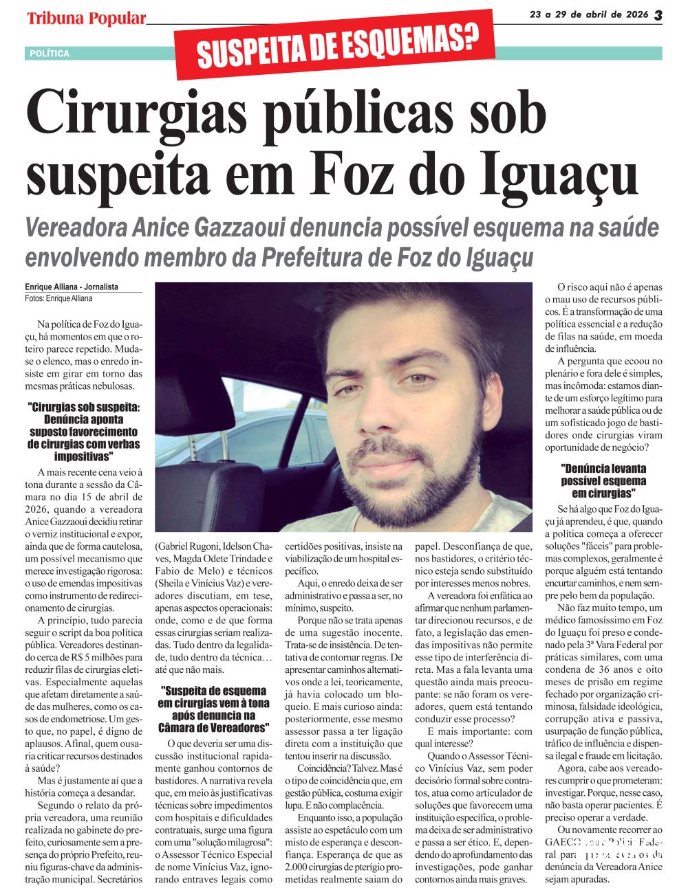 Agora, cabe aos vereadores cumprir o que prometeram: investigar. Porque, nesse caso, não basta operar pacientes. É preciso operar a verdade.
