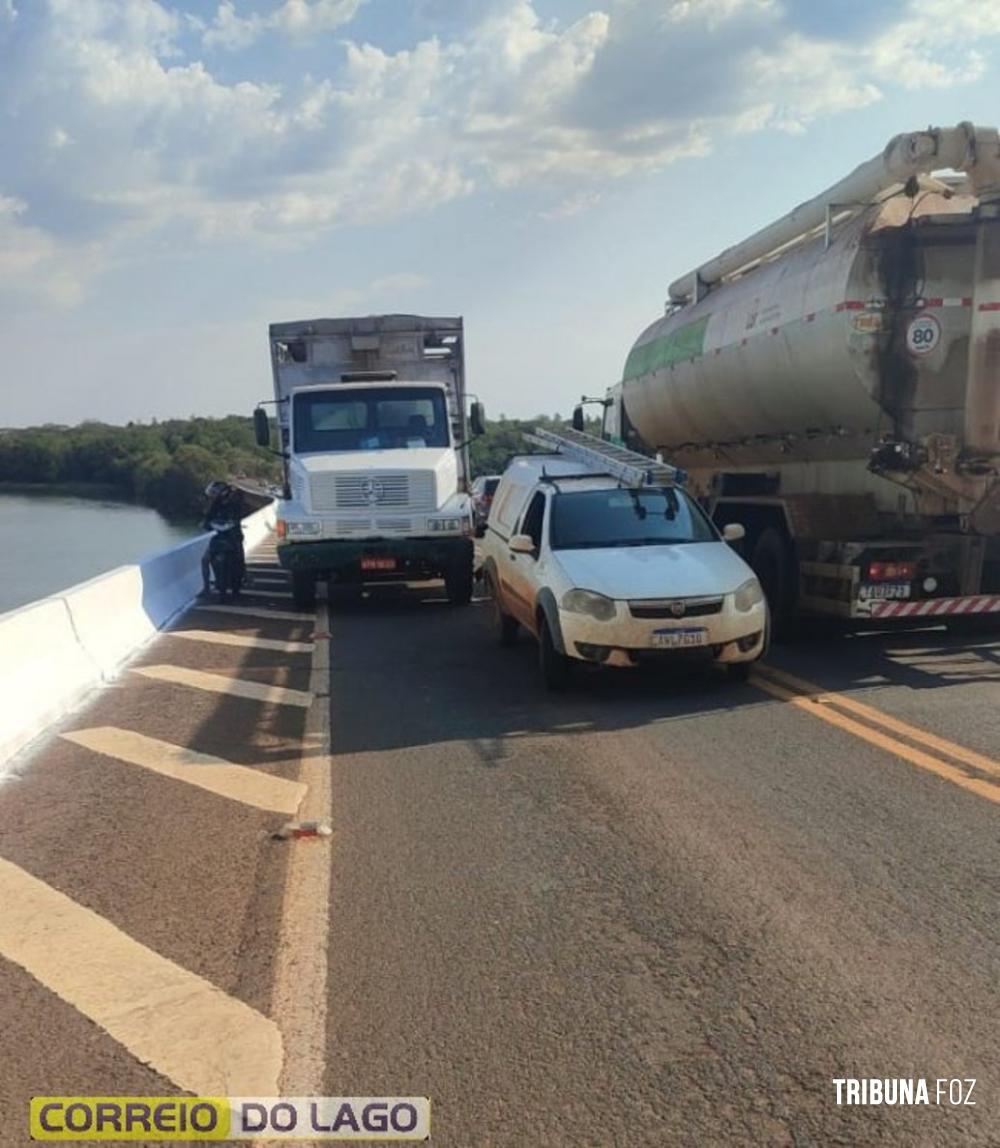 Colisão entre caminhão e veículo da prefeitura é registrada na ponte de Santa Helena