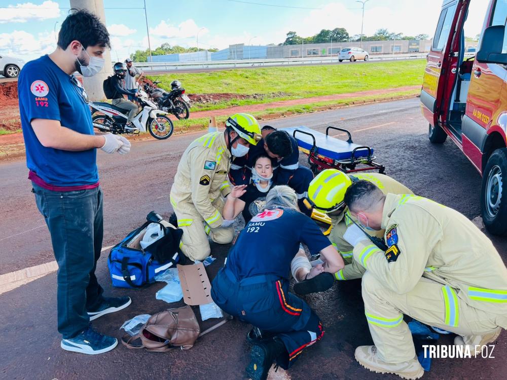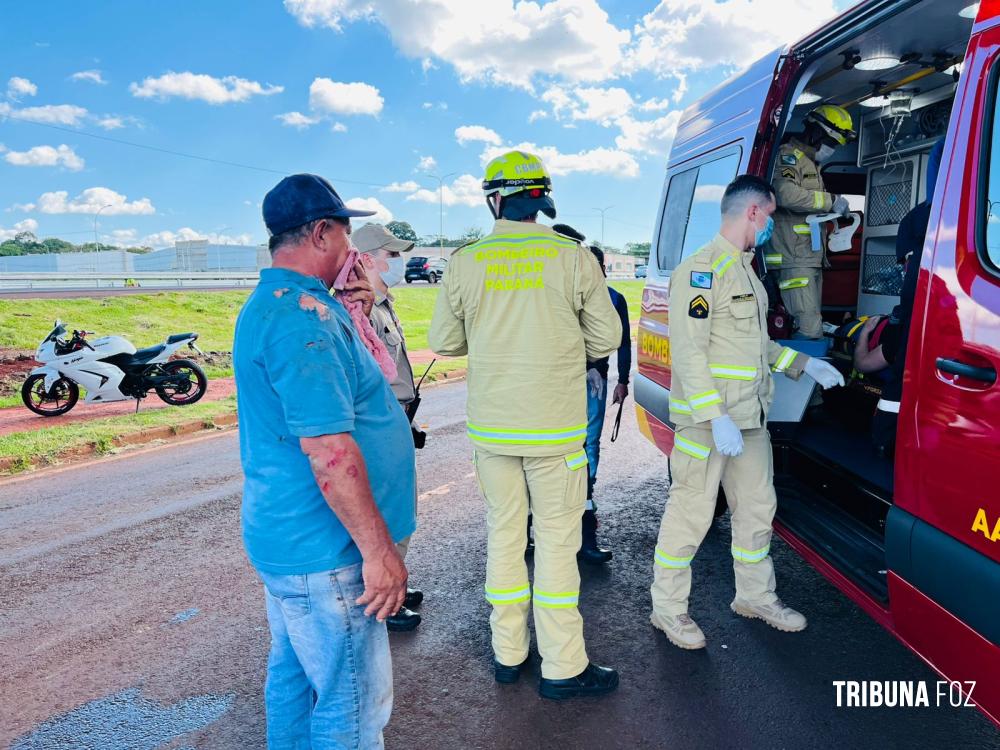 Colisão entre duas motocicletas deixa duas pessoas feridas na marginal da BR-277
