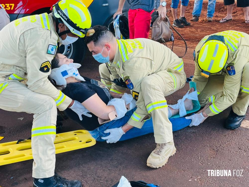 Na outra motocicleta estava uma mulher, que sofreu fraturas no braço e na perna, além de escoriações pelo corpo. Ela recebeu os primeiros atendimentos no local e foi encaminhada para o Pronto Socorro do Hospital Municipal.
