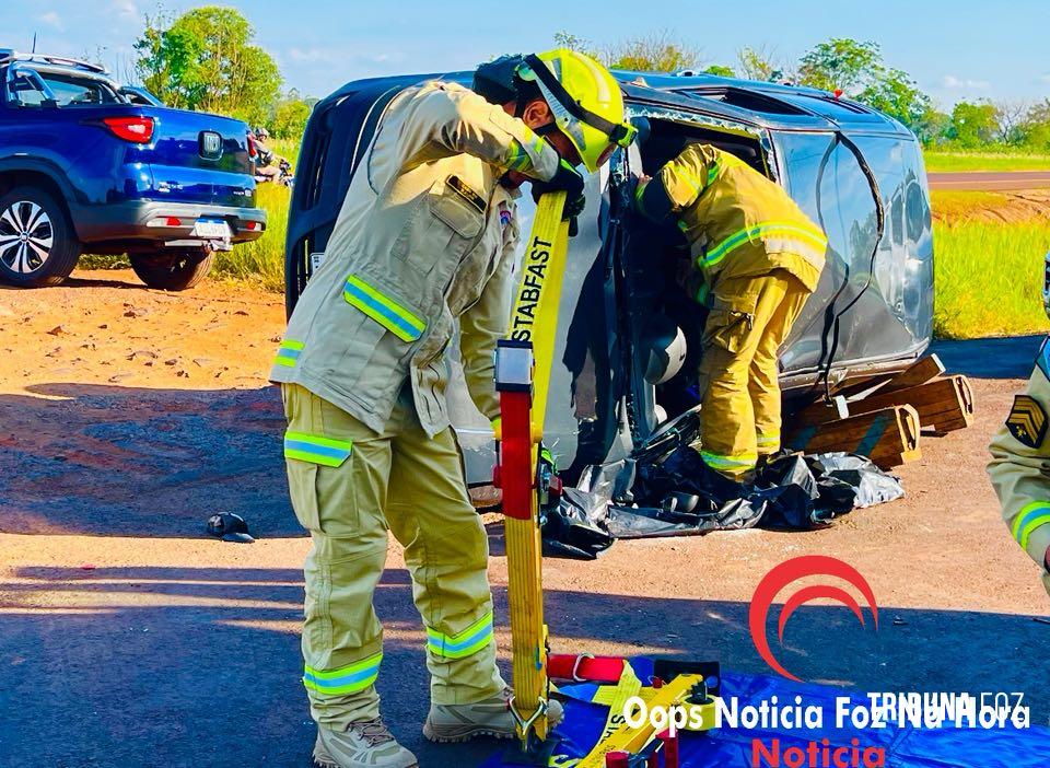 No veículo que tombou estavam uma mulher e um homem, que ficaram presos dentro do automóvel. Ambos foram resgatados pelos bombeiros, apresentando ferimentos leves, sendo avaliados e liberados ainda no local.