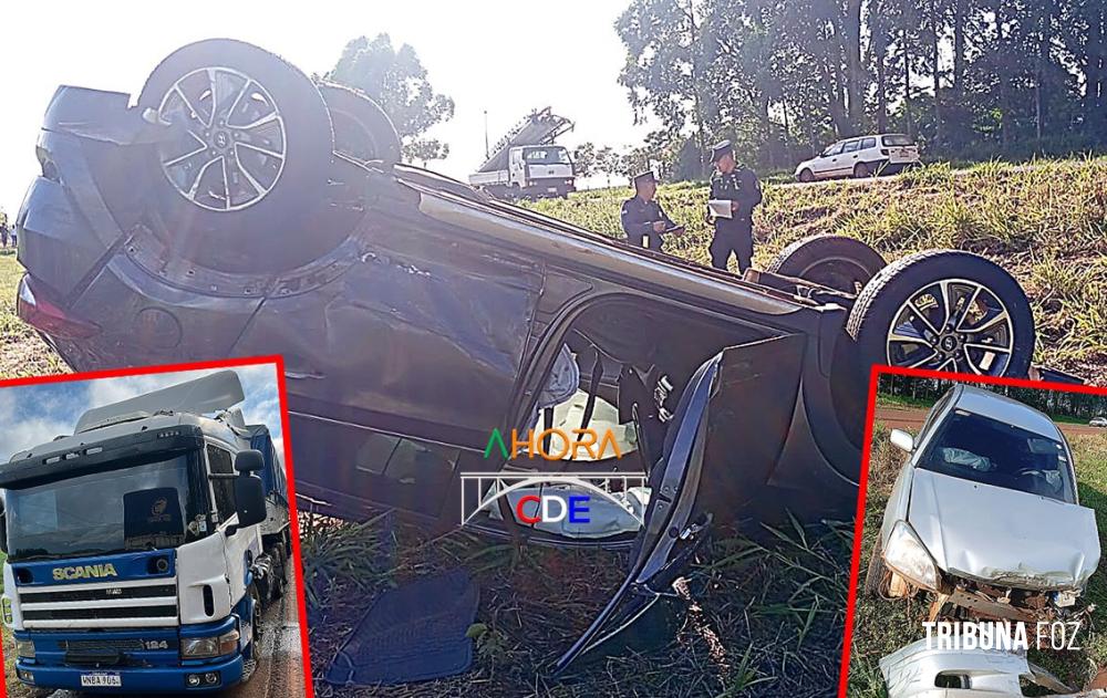 Colisão tripla seguido de capotamento deixa quatro pessoas com ferimentos leves em em Santa Fé, no Paraguai