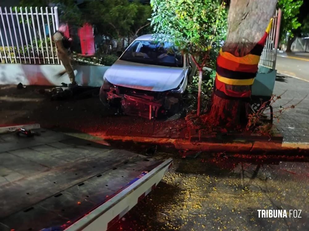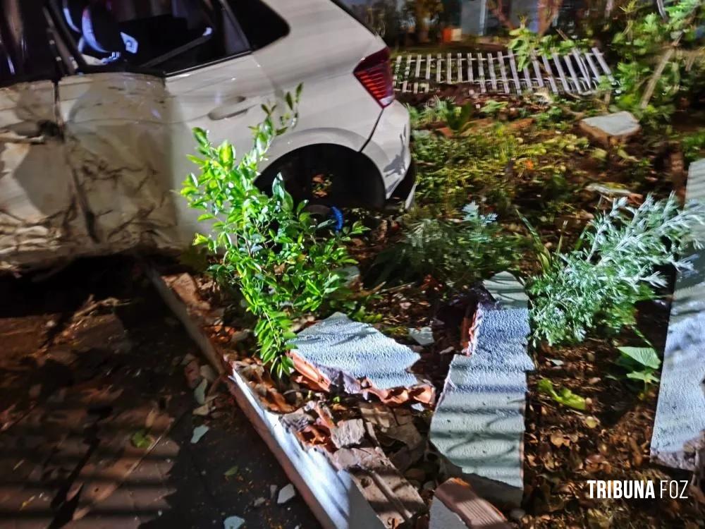 Condutor colide violentamente carro contra cerca durante a madrugada em Marechal Cândido Rondon