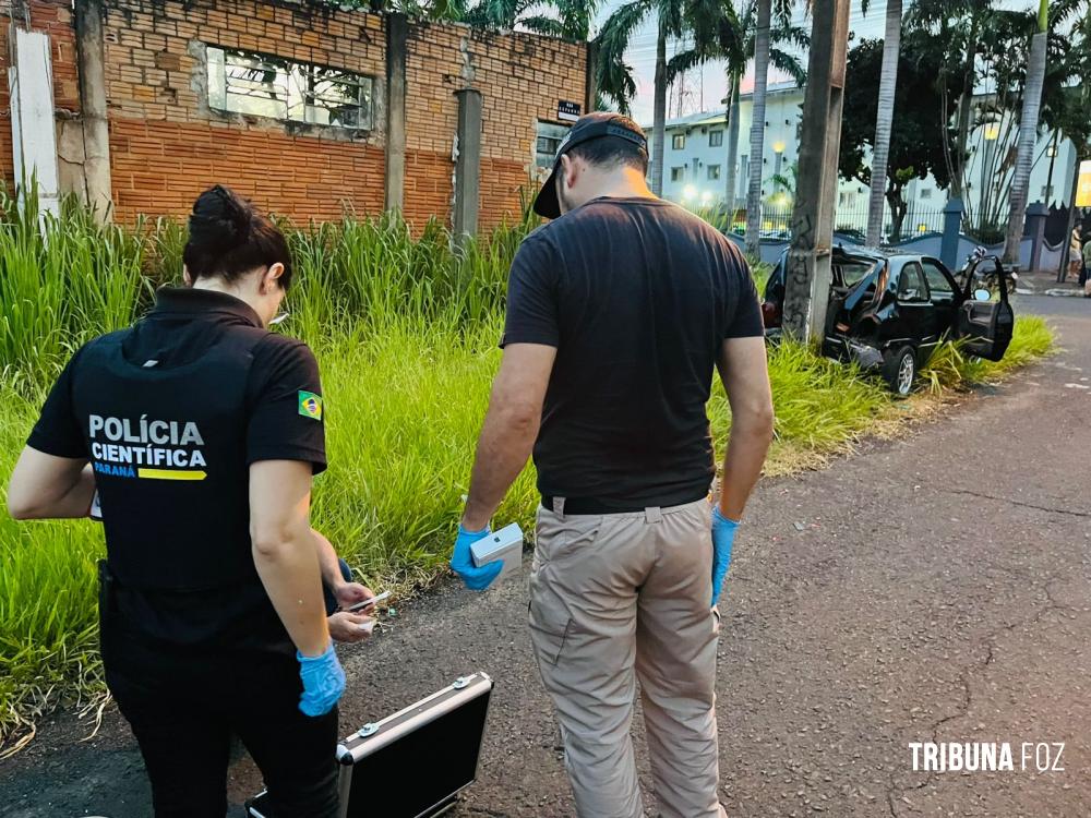 Durante a tentativa de fuga, um veículo VW / Corsa foi alvejado e acabou colidindo contra um poste. Segundo informações, os criminosos eram quatro indivíduos. Dois deles tentaram fugir pelos fundos da residência.