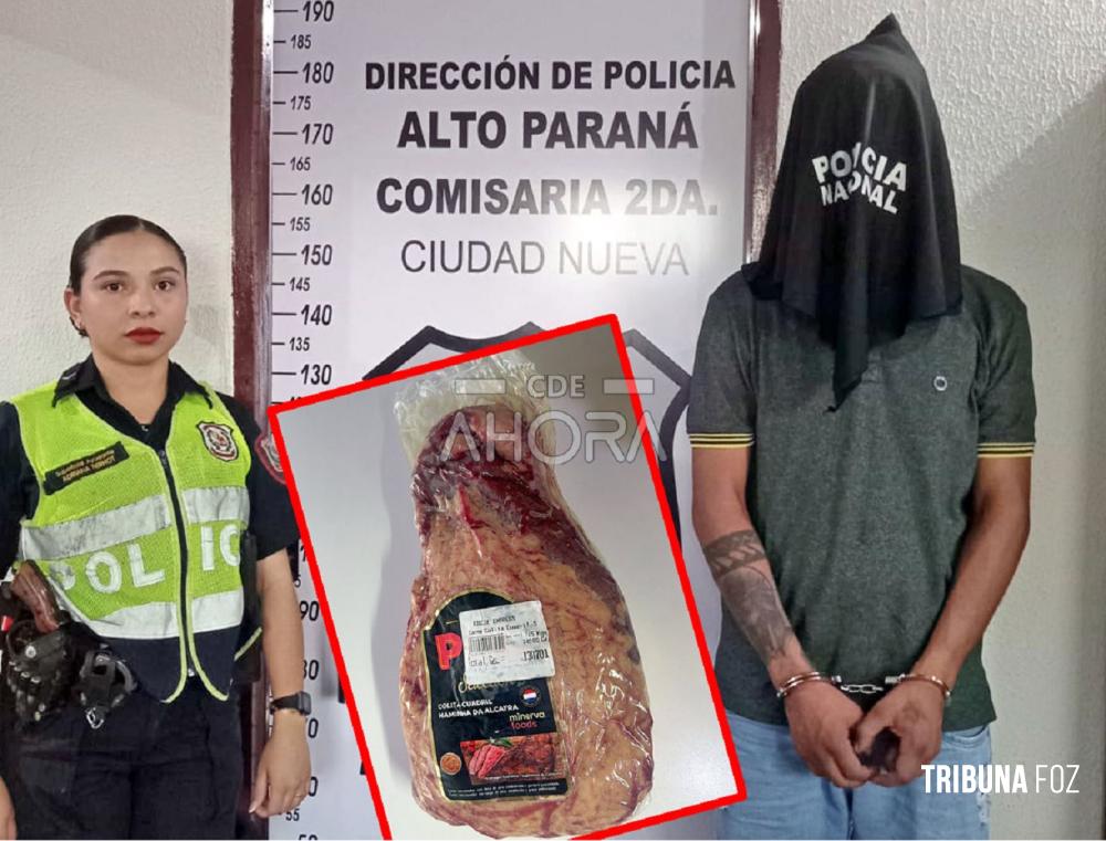 Um homem de 29 anos de idade foi preso após ser flagrado tentando furtar um corte caro de carne bovina de um minimercado conhecido no bairro de Ciudad Nueva, em Ciudad Del Este, no Paraguai.