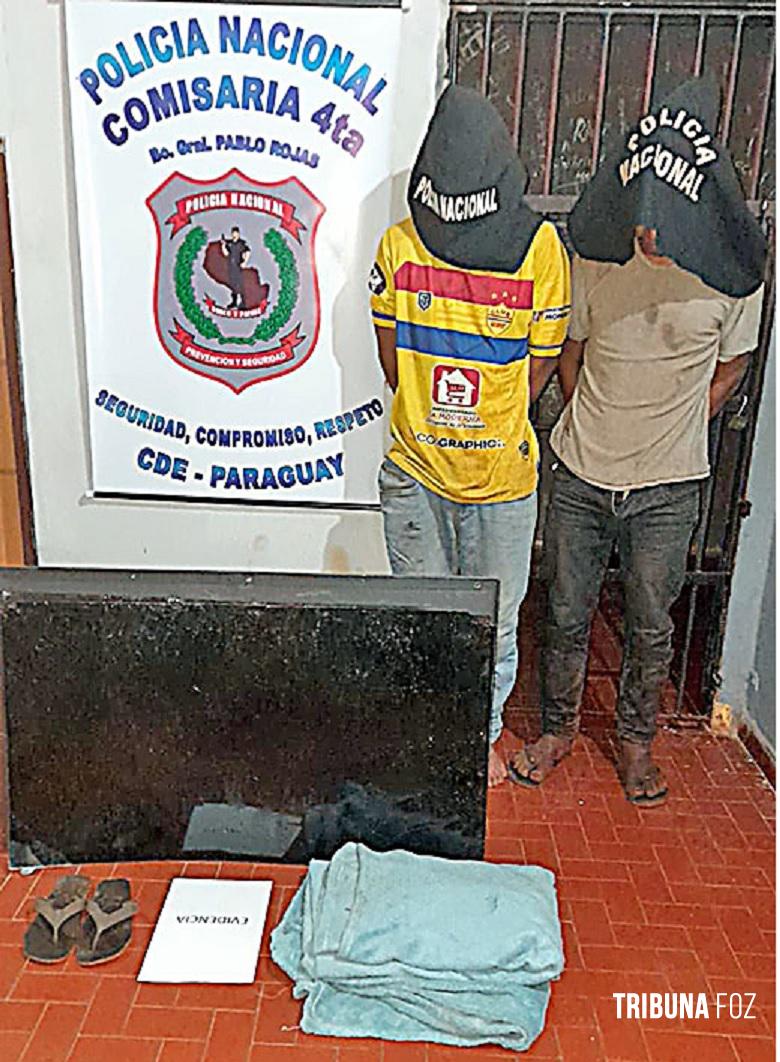 Dois homens indígenas foram presos na madrugada desta terça-feira, 28 de abril de 2026, acusados de furto em residência. Alguns dos itens roubados de uma casa localizada no quilômetro 5,5 do bairro La Blanca, em Ciudad Del Este, no Paraguai foram recuperados.