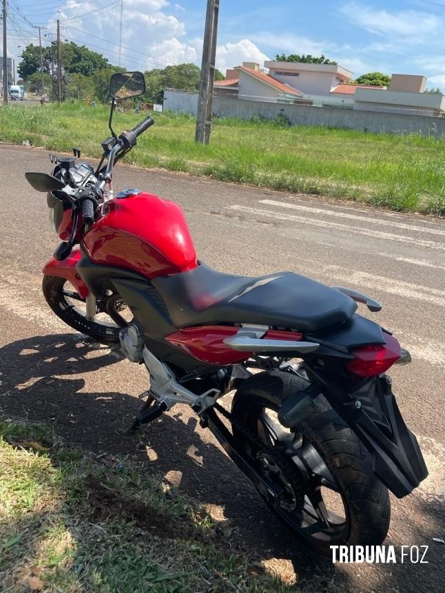 Na tarde de ontem, quinta-feira 05 de março de 2026, uma equipe da Guarda Municipal de Foz do Iguaçu, que tinha conhecimento de que dois indivíduos em uma motocicleta Honda / CB 300, de cor vermelha, estariam praticando assaltos na região da Vila A. Durante patrulhamento pela Avenida Silvio Américo Sasdelli, no Jardim das Palmeiras, os agentes municipais avistaram uma motocicleta sem placa, com características semelhantes às repassadas.