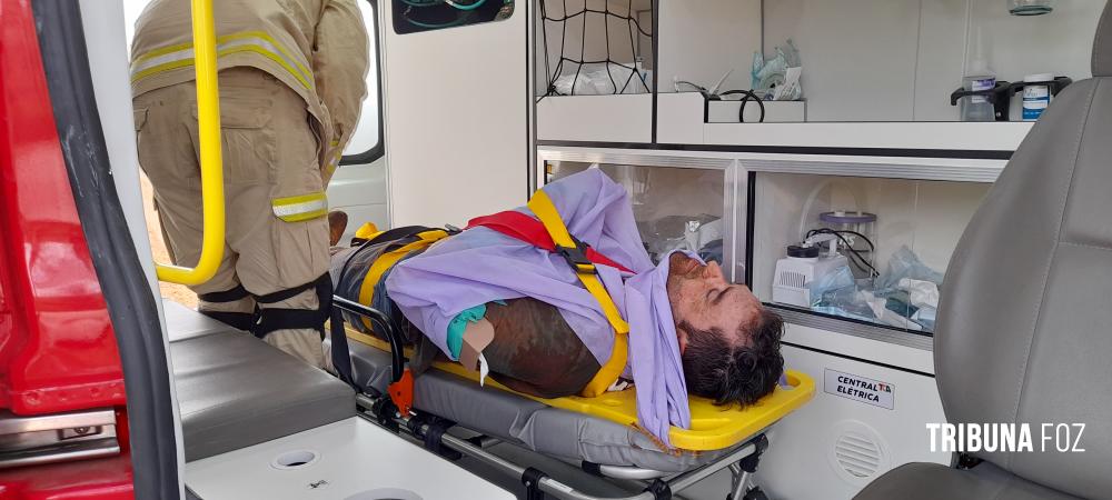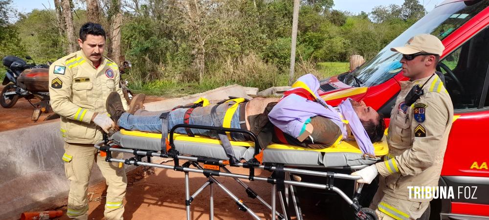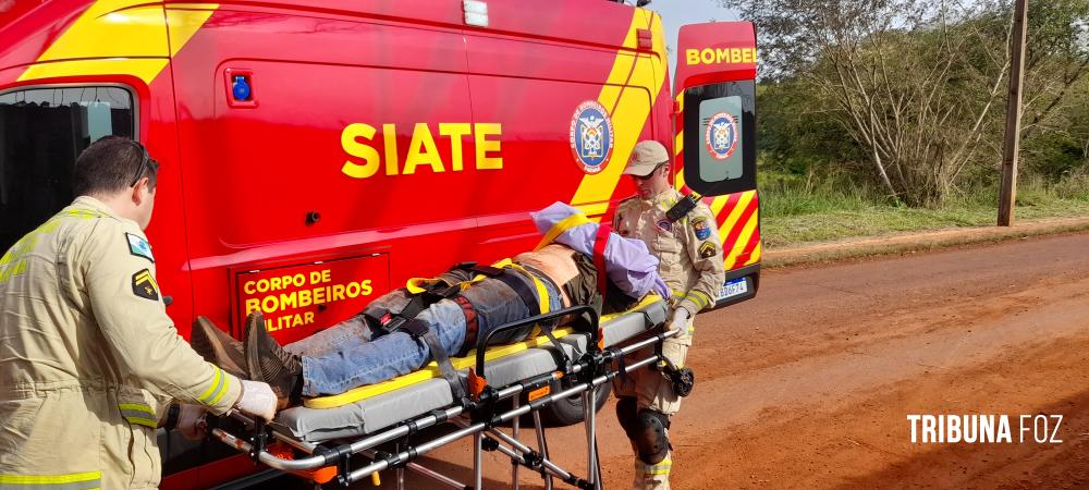 Socorristas do Siate deram atendimento ao motociclista, que foi encaminhado para o Pronto Socorro do Hospital Municipal em decorrência de uma possível fatura no braço e uma laceração na região pélvica.