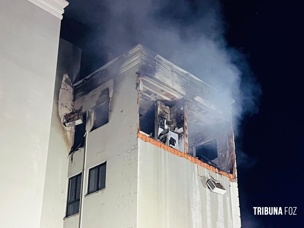 Explosão por vazamento de gás destrói apartamento em condomínio no bairro Vila Yolanda em Foz do Iguaçu