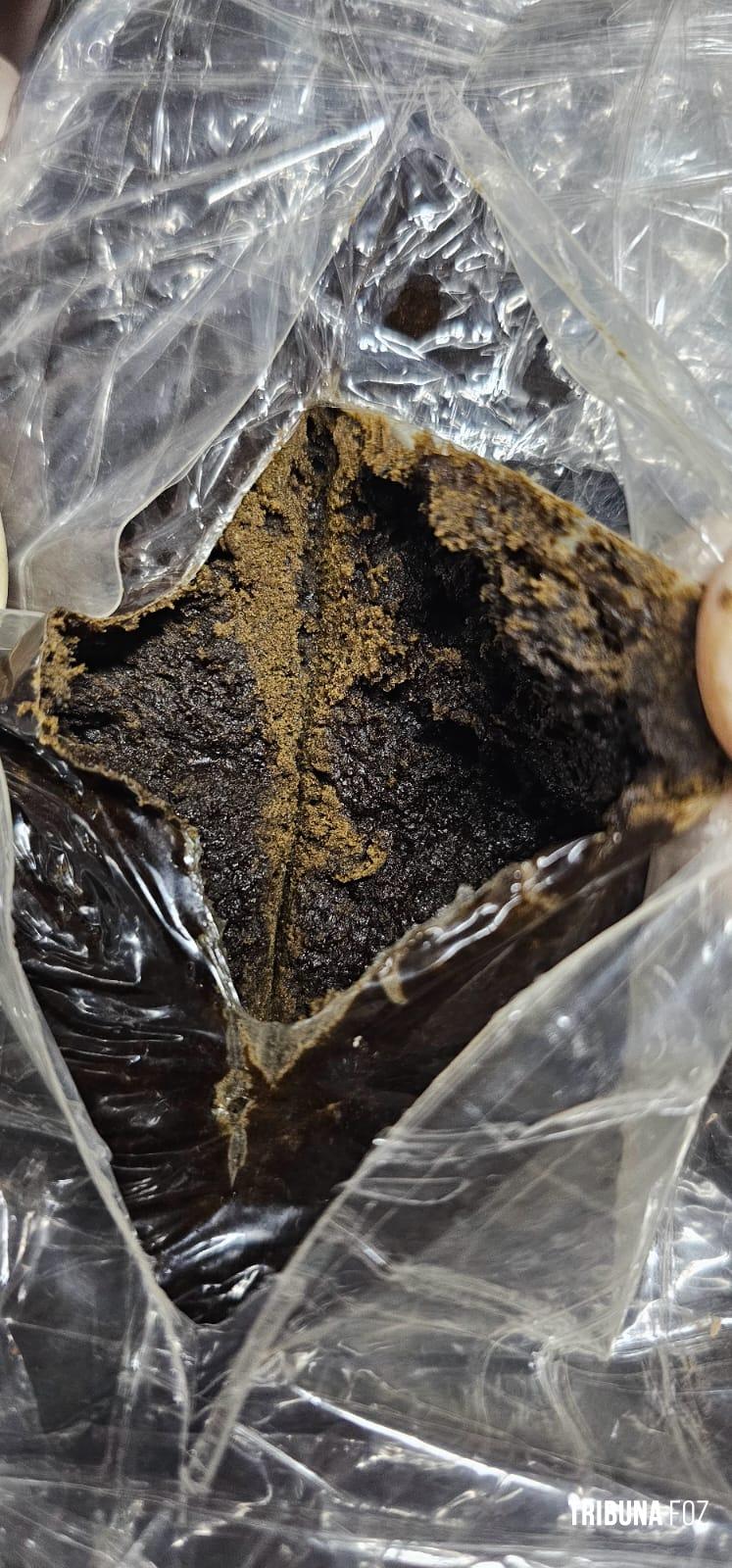 Após a pesagem, o material totalizou aproximadamente 61,4 Kg de pasta base de cocaína, 86 Kg de haxixe marroquino e 6,2 Kg de cocaína pura