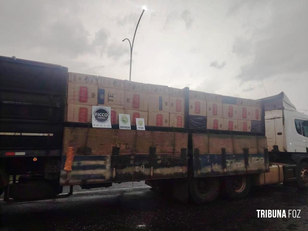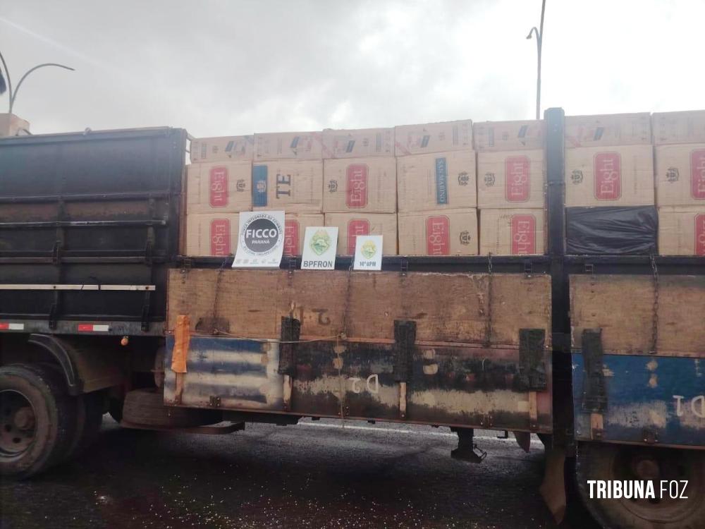 FICCO/PR apreende duas carretas e prende dois paraguaios com 603 caixas de cigarros em Santa Terezinha de Itaipu