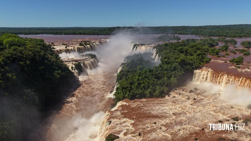 Já na manhã desta terça-feira (14), a vazão registrada foi de 5 milhões de litros por segundo, cerca de 2 milhões a menos do que o pico observado no dia anterior. O nível vem diminuindo gradualmente, mas o cenário continua grandioso: a Maravilha Mundial da Natureza exibe uma força que emociona e impressiona todos os visitantes.