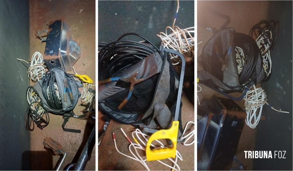 Durante a abordagem, os agentes constataram que no interior da mochila havia grande quantidade de fios novos de energia elétrica. Diante da situação, a equipe realizou diligências nas proximidades e conseguiu localizar o ponto do furto, onde o relógio de energia estava no chão e a via encontrava-se com a iluminação pública comprometida. O indivíduo foi detido e, juntamente com os materiais recuperados, encaminhado para a Delegacia da Policia Civil para as providências cabíveis.