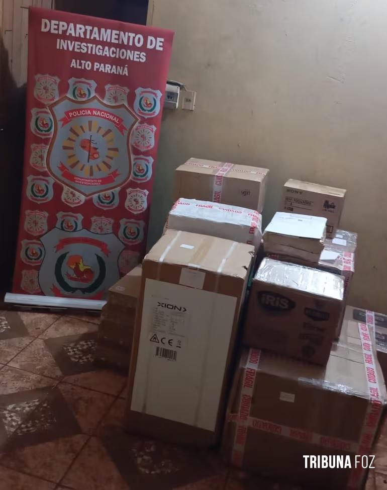 No local, apreenderam 16 caixas de celulares roubados, uma caminhonete VW / Amarok e outros dois veículos e prenderam Iris Lujan Penayo Canete, de 22 anos de idade.