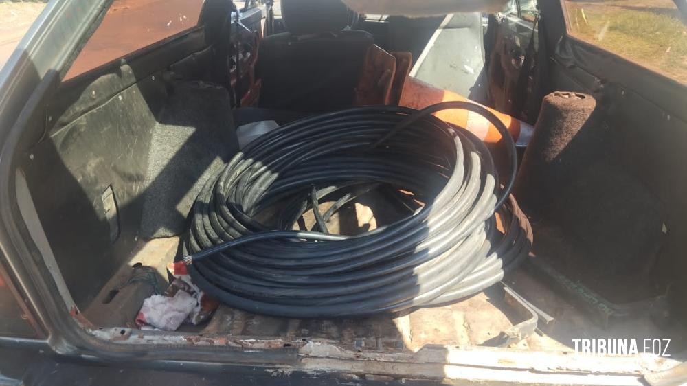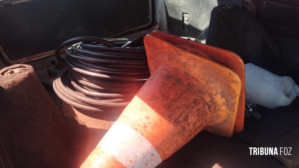 No veículo havia capacetes, alicates, um rolo de fios. Diante dos fatos o veículo e os dois indivíduos foram presos e encaminhados para a Delegacia da Polícia Civil (6ª SDP) para providências cabíveis.