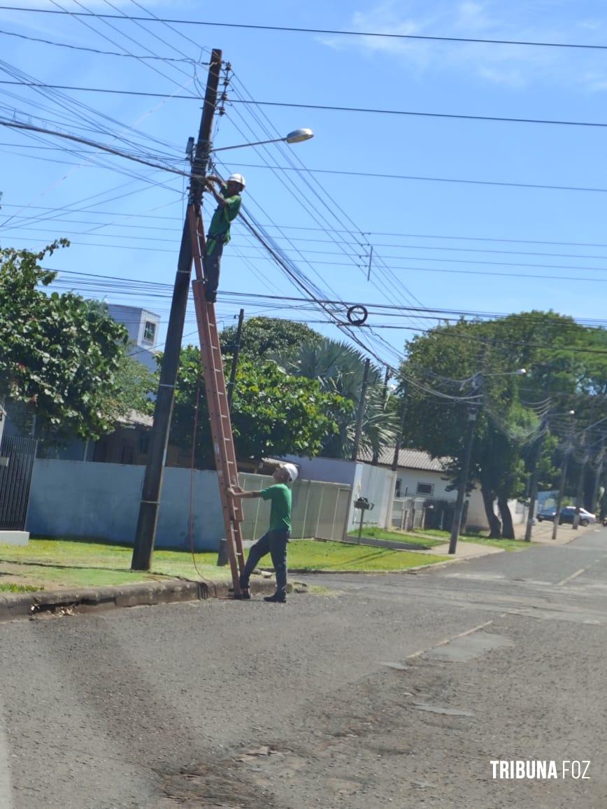 Por volta das 14h:00 de ontem, terça-feira 11 de novembro de 2025, uma equipe da Guarda Municipal de Foz do Iguaçu abordou dois indivíduos que segundo denúncia estariam furtando fios do poste no bairro Portal da Foz.
