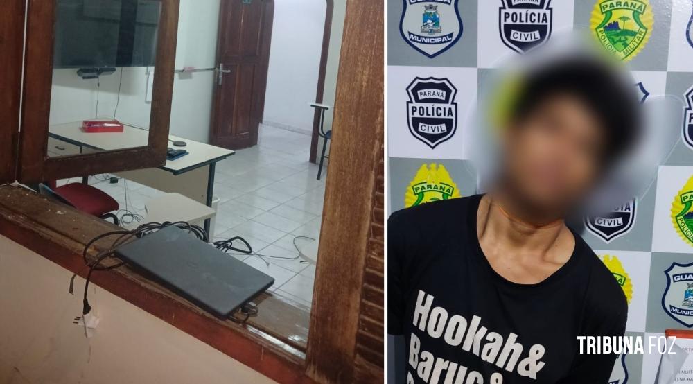 No local, foi detido o indivíduo identificado pelas iniciais A.N., de 26 anos de idade, de nacionalidade paraguaia, de posse de um notebook que acabara de furtar do estabelecimento de ensino.