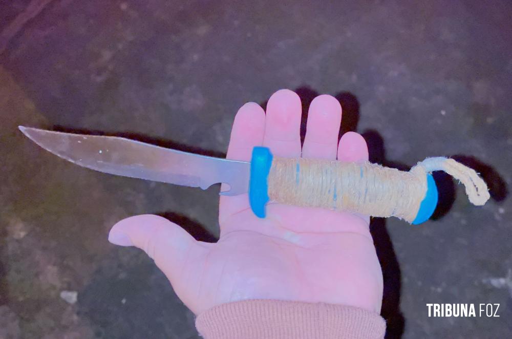 No local os servidores municipais encontraram o homem trancado dentro de um dos cômodos da casa, portando uma faca. Após tentarem dialogar com o agressor, ele saiu do imóvel com a faca escondida, reagindo de forma agressiva contra os guardas municipais.