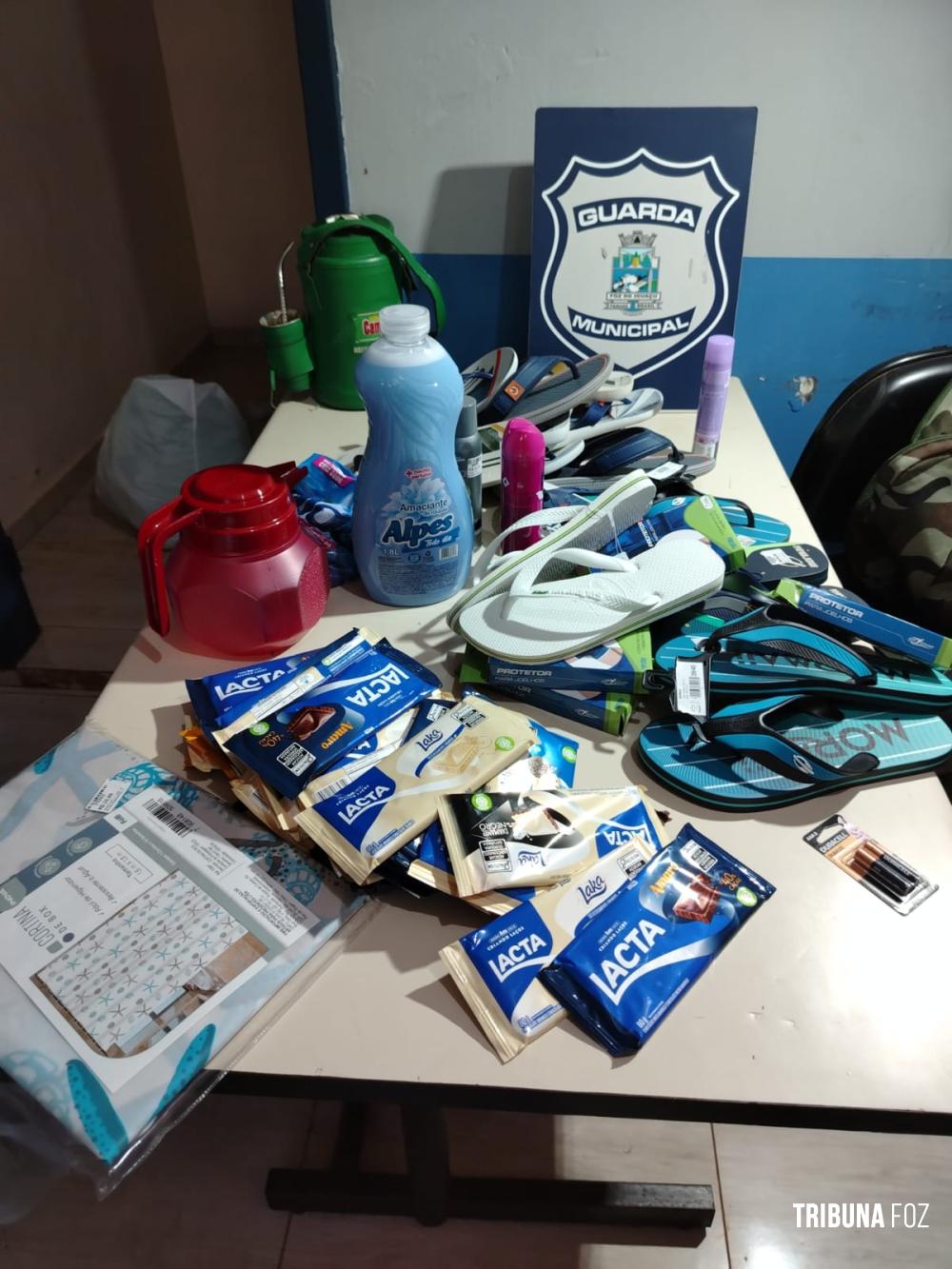 Em patrulhamento foram localizados os suspeitos, já na rua Naipi, cruzamento com a Rua Bartolomeu de Gusmão, sendo todos detidos em posse dos produtos furtados (9 pares de chinelo, 4 caixas de protetor de joelhos, 24 barras de chocolates, etc), sendo os suspeitos, todos paraguaios, conduzidos pelos servidores municipais para a Delegacia da Polícia Civil (6ª SDP) para as formalidades legais, onde também compareceram as vítimas para as devidas representações.