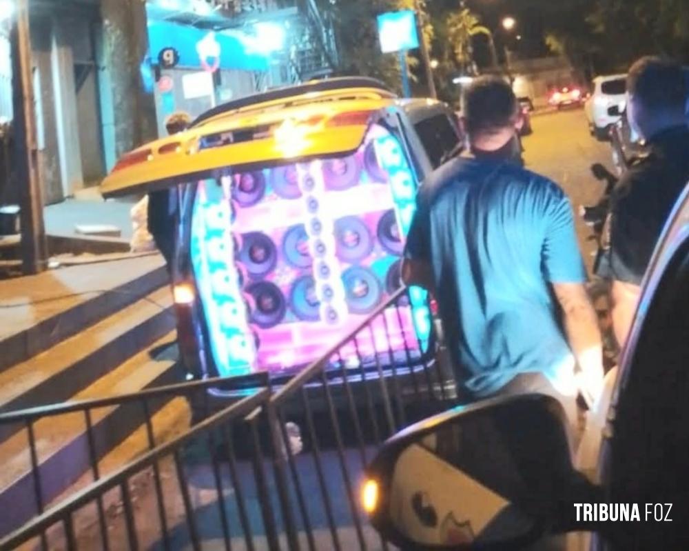 O motorista, Fabio Junior Troche Zarza, de 28 anos d eidade, morador do bairro San Antonio, em Presidente Franco, tinha um sistema de som no porta-malas tocando música alta.