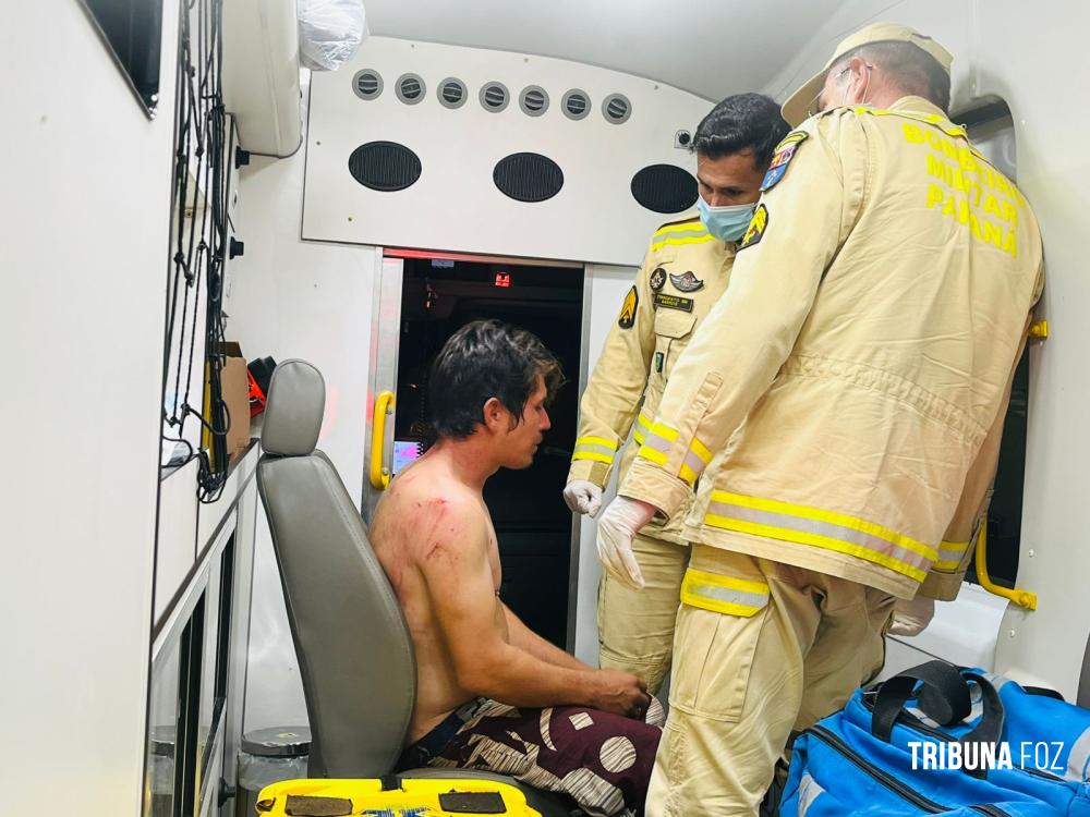 Após receber os primeiros socorros, o rapaz foi encaminhado para o Pronto Socorro do UPA João Samek para avaliação médica.
