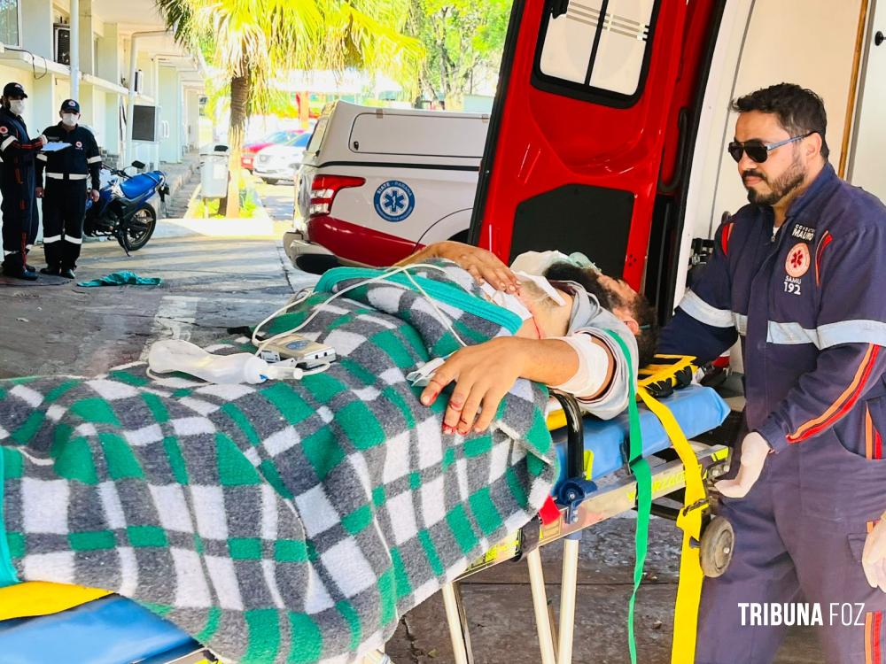 A vítima, identificada como Marcelo Benítes, de 43 anos de idade, foi encaminhada em estado grave para o Pronto Socorro do Hospital Municipal de Foz do Iguaçu.