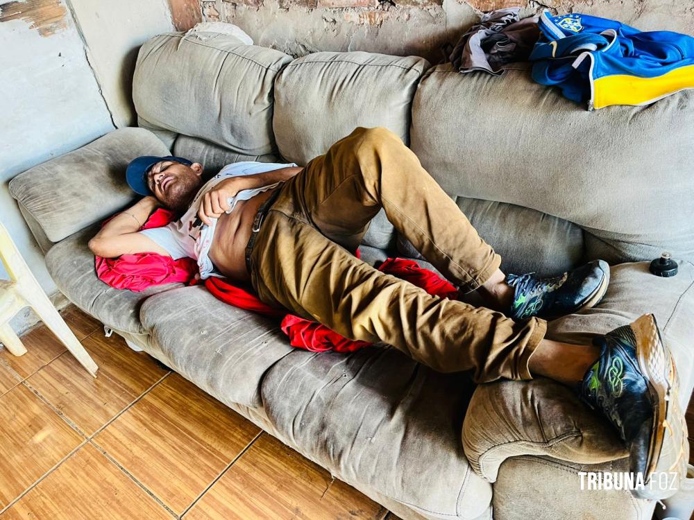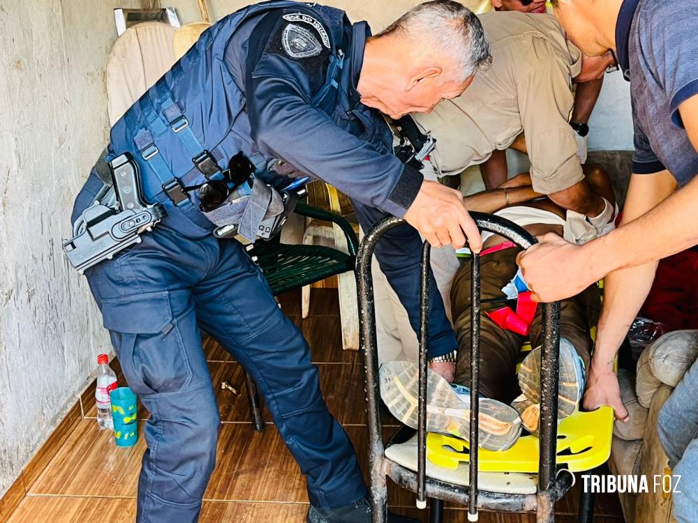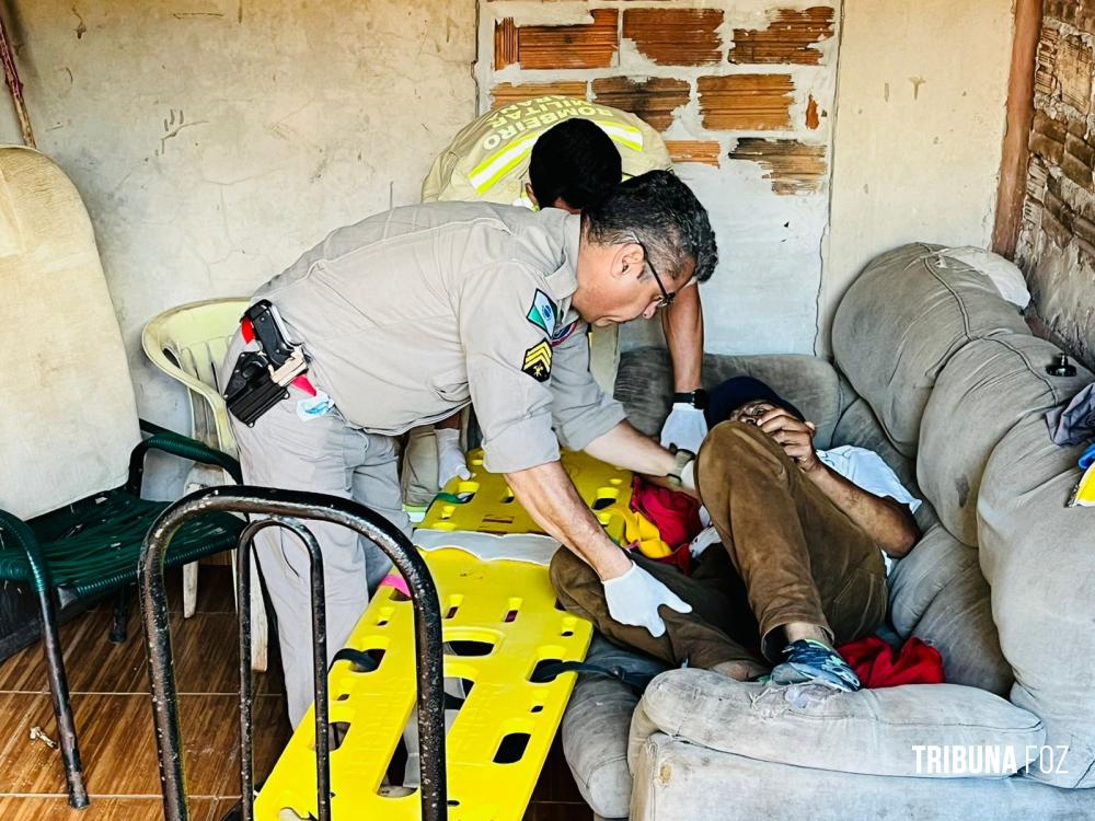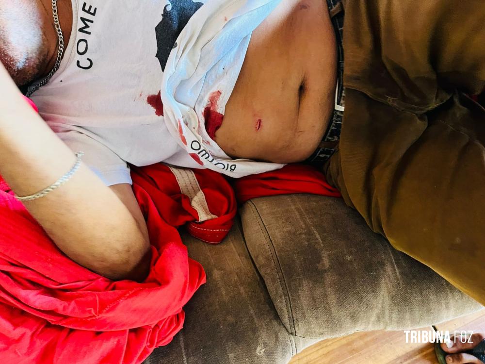 No local, os socorristas encontraram um homem atingido por duas facadas, sendo uma no abdômen e outra nas costas. Mesmo ferido, ele conseguiu caminhar até a residência de amigos pedindo socorro.