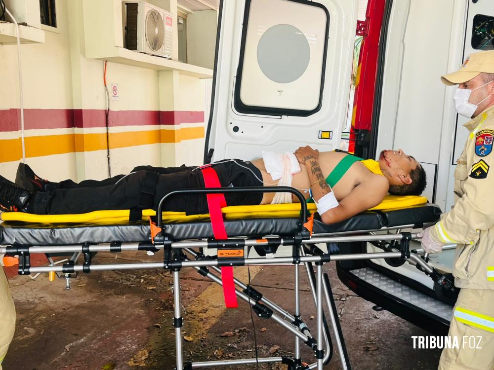A vítima, identificada como João Gabriel Rodrigo de Abreu, de 27 anos, foi encaminhada ao Hospital Municipal de Foz do Iguaçu em estado gravíssimo.
