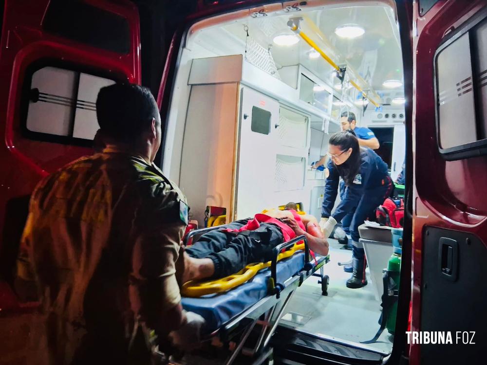 O homem, identificado como Ramon dos Santos Passos, de 36 anos de idade, foi encaminhado em estado grave ao Hospital Municipal de Foz do Iguaçu.
