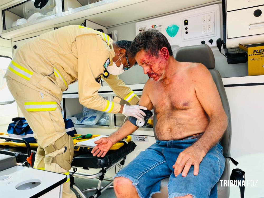 Ao chegarem no local, os socorristas constataram que o homem apresentava grande sangramento na região do crânio e fratura no maxilar, sendo necessário atendimento imediato.